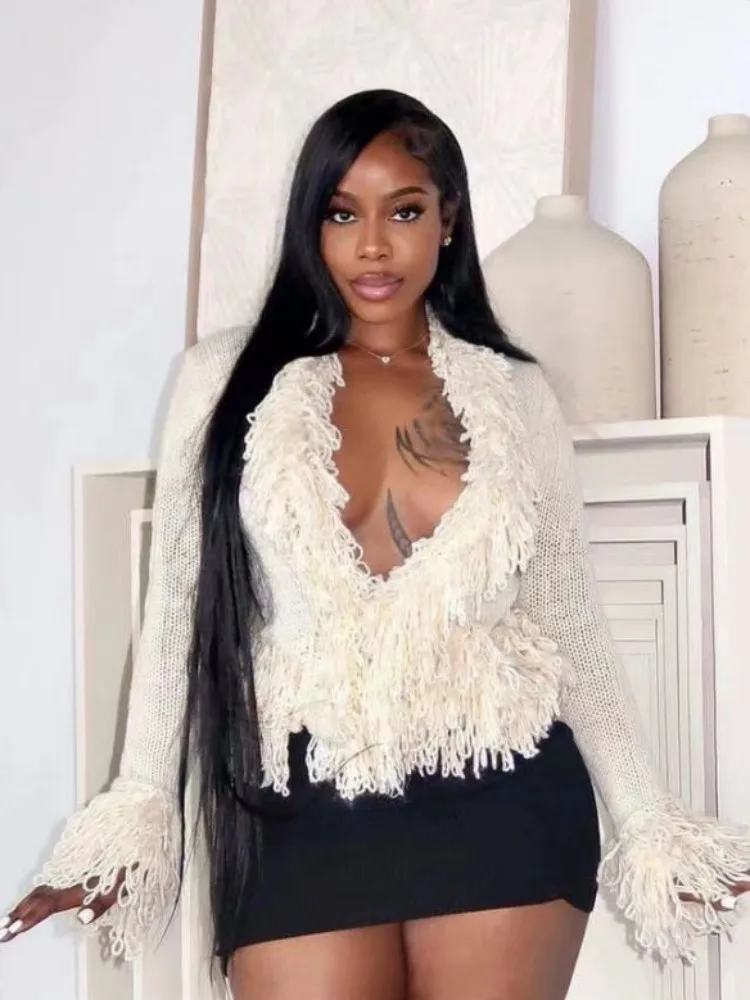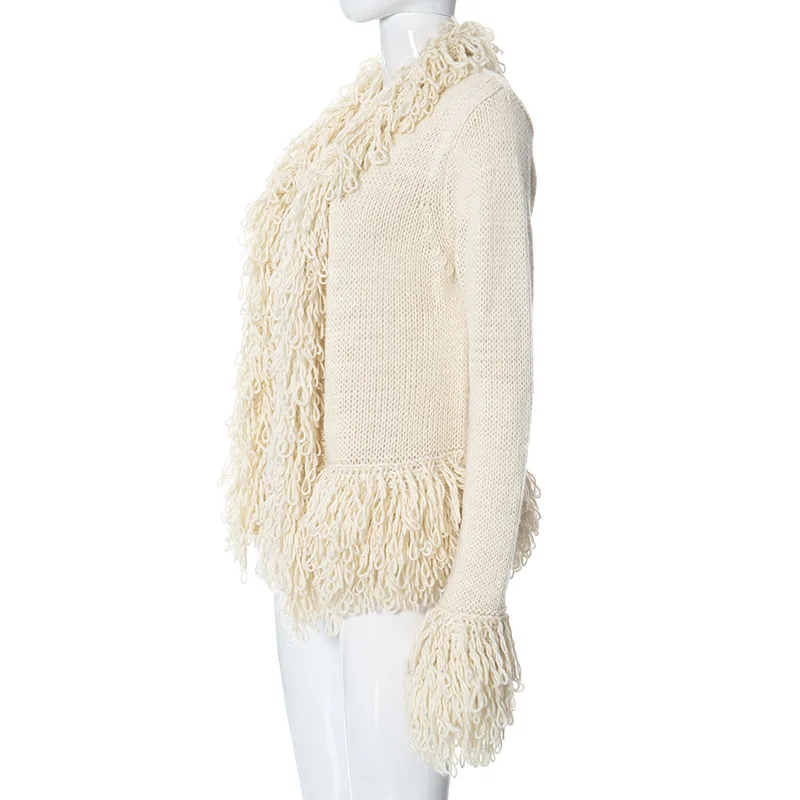 Vintage Fringe Sweater Jackets Women Hipster Long Sleeve Knit Cardigan